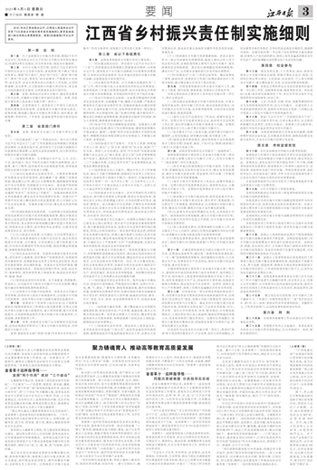 近日,中共江西省委办公厅、江西省人民政府办公厅印发了《江西省乡村振兴责任制实施细则》,要求各地各部门结合实际认真贯彻落实。现将《实施细则》予以公开发布。