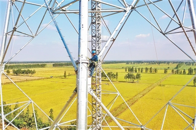 10月11日,在南昌市新建区,由国网江西省电力有限公司建设分公司建设管理的武汉至南昌1000千伏特高压工程赣4标段正在施工作业。该工程是江西的第三个特高压工程,建成投运后,华中地区将形成1000千伏特高压“日”字形交流环网,江西接受区外电力的能力将大大提升。王蕴蓉摄