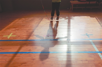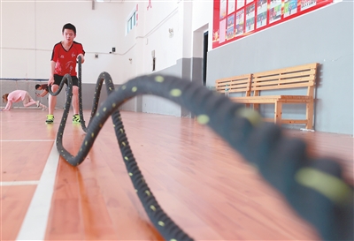 跳绳融合了速度、力量和技巧,需要反复琢磨和练习。图为“光明行”跳绳队队员在做力量和速度训练。