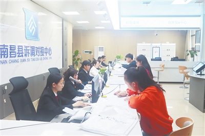 为汇聚更多专业力量,南昌县致力于构建矛盾纠纷“大化解”格局,将矛盾纠纷调处中心、心理服务指导中心、非公有制企业维权服务中心、公共法律服务中心、县诉调对接中心等9个“中心”整合成社会矛盾多元化解中心,建立了高度融合的矛盾多元化解实战体,打造人民调解、行政调解、司法调解、诉讼服务有序衔接、无缝对接的全域调处平台。