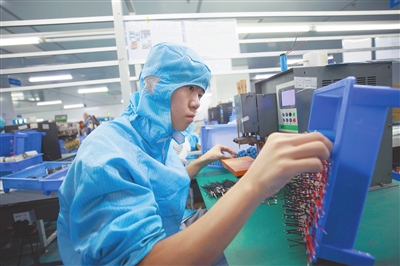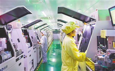 近日,瑞昌经开区科技园江西瑞晟科技有限公司生产车间内,工人正在智能生产线上赶制订单。该公司是一家专业从事研发、生产、销售SMD、LED器件的国家高新技术企业,产品销往全球30多个国家和地区。 特约通讯员 魏东升摄