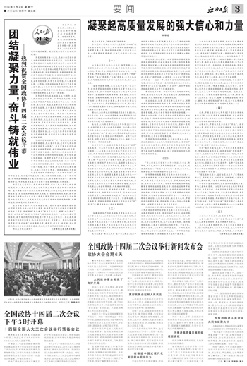 新华社北京3月3日电 全国政协十四届二次会议将于3月4日下午3时在北京人民大会堂开幕。