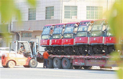 2月19日,泰和县振兴农机有限公司的员工正在卸载农机,抢抓农时备春耕。 (特约通讯员 邓和平 摄)