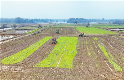 在纵横交错的高标准农田上,机器声隆隆作响,农民抢抓农时,驾驶农机翻耕田地,按下了春耕备耕“快进键”,为早春粮食生产开好头、起好步。