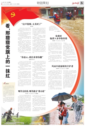 入汛以来,我省各地闻“汛”而动,广大党员干部纷纷奔赴防汛一线,奋战在救灾前沿,冒雨巡堤、转移群众、抢修道路、运送救灾物资……处处都有基层组织的力量,处处闪现着党员干部的身影。
