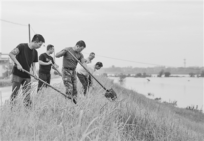 6月28日,万年县石镇镇干部在乐安河中洲圩堤李湾段巡查。面对强降雨,万年县组织党员干部成立突击队,对沿河堤坝进行24小时“地毯式”检查,确保河堤安全度汛。特约通讯员 徐声高摄