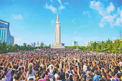 2024年8月1日,南昌市在八一广场举行升旗活动,现场人山人海,气氛热烈。