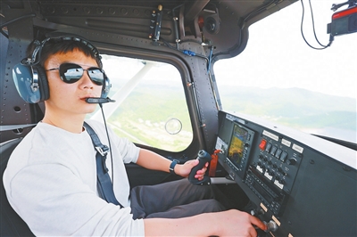 2024年4月26日,在赣州低空经济产业园,飞行教练员带领记者体验低空飞行。