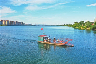 2024年7月17日,渡船横穿赣江泰和段。澄江大桥完工后,泰和沿溪、南门、东门和竹山4个赣江渡口将逐渐退出历史舞台。