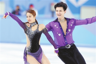 2月11日,中国组合任俊霏/邢珈宁(右)在比赛中。最终,他们以64.29分的成绩暂列第二。