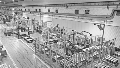 2月19日,在南昌高新区的江西铜业加工事业部漆包线分厂内,机器人正有条不紊地对铜产品进行包装。本报全媒体记者 张翰林摄