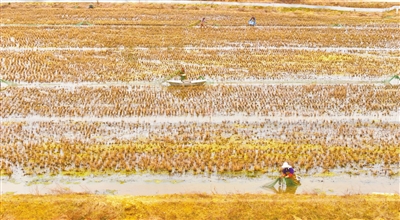2月17日,大余县新城镇龙王庙村稻虾综合种养基地,工人正在捕捞小龙虾,准备供应市场。特约通讯员 叶功富摄