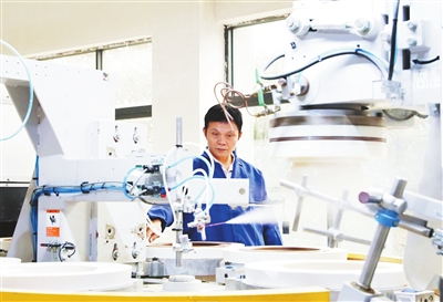 黎川县陶瓷企业的全自动数控滚压成型生产线高速运转 葛运琪摄