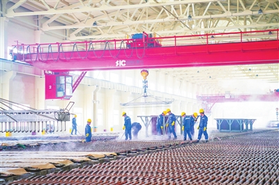 临川经济开发区内的江西自立环保科技电解铜车间,工作人员正在进行电解作业 郭 昊摄