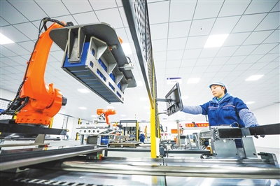 南丰县智能制造产业园内,工人在智能化生产车间装配光伏储能电池谢 东摄