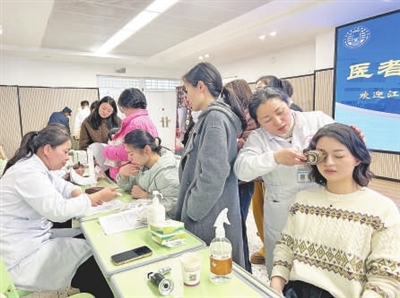 活动现场,该院精心设置了中医养生体验区,推出艾灸经络梳、耳部全息铜砭刮痧及推拿等项目;准备了独家调配的中医特色足浴包、人参八宝茶饮。在中医专家和康复理疗团队的悉心指导下,师生们亲身感受了中医养生的奇妙功效。吴 蓉摄