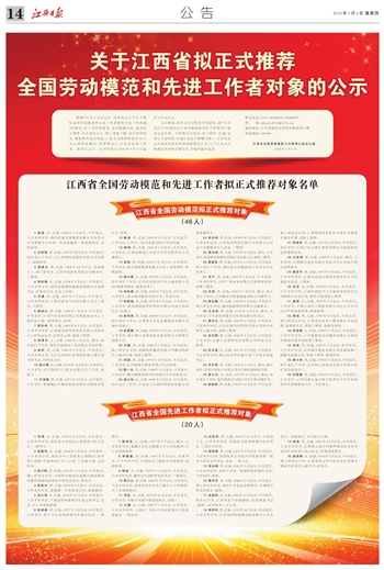 江西省全国劳动模范和先进工作者拟正式推荐对象名单