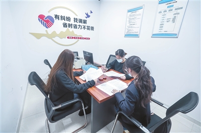 2月25日,在浙江省嘉兴市南湖区社会矛盾纠纷调处化解中心,调解员(右一)在调解金融借款合同纠纷。新华社记者 徐 昱摄