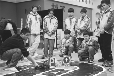 3月12日,嘉兴市实验小学的老师指导学生通过编程为智能小车设计自动行驶算法。近年来,浙江省嘉兴市南湖区各中小学通过创建信息科创中心、机器人工作室等平台,推动人工智能技术在教育领域的普及和应用。 新华社记者 徐 昱摄