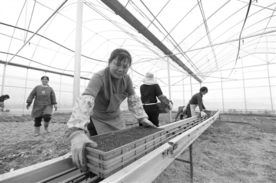 近年来,余干县大力推行育秧集约化、规模化和工厂化生产,提高早稻育秧质量和效率。图为3月11日,梅港乡赤岭村信江农机合作社育秧点,村民进行炼秧作业。本报全媒体记者 涂汉林摄