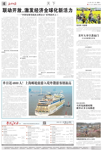 在世界经济增长动能不足的背景下,中国以联动和开放思维打造要素流动的协同系统,推进共同发展的格局重塑。面对单边主义与保护主义加剧等挑战,中国坚持开放合作理念,致力于让各国发展“联”起来,让世界经济之水“活”起来,为中国式现代化开拓战略纵深,为遭遇逆风的经济全球化注入新活力。