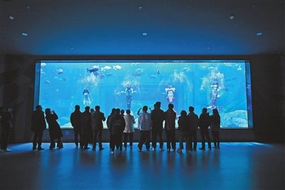 精彩的“美人鱼”表演吸引众多游客驻足观看。