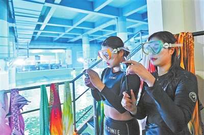 除了演出,“美人鱼”演员还要下水拍摄视频,用于水生生物保护的科普宣传。