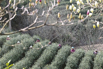 近日多地气温回升,茶山吐露新绿,春茶进入采摘期,各地组织茶农抢采早春茶供应市场。
