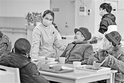 近年来,赣州市南康区探索“机构+社区+居家”养老服务网格模式,让老年人老有所养、老有所学、老有所乐。图为近日,在该区蟠桃园老年公寓,护理人员了解老人的日常饮食需求。特约通讯员 朱海鹏摄