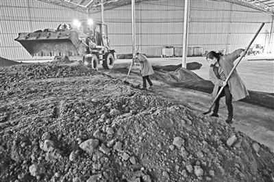 近日,永丰县金满园生态农业科技有限公司,工人正加紧生产有机肥料。通讯员 刘浩军摄