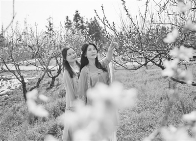 3月19日,游客在万年县湖云乡吾峰家庭农场游玩,欣赏盛开的桃花,感受春天的浪漫。特约通讯员 徐声高摄