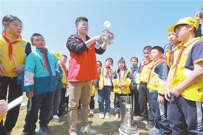 今年3月23日是第六十五个世界气象日。3月19日,大余县第三小学组织学生到县气象局气象场站参观,学习气象知识,了解气象观测在生产生活中的作用。图为气象人员给同学们讲解气象预报知识。特约通讯员 叶功富摄