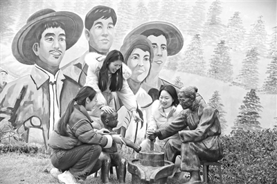 奉新县围绕乡村振兴、人居环境整治等主题,绘制内容丰富的乡村文化墙,引领文明新风。图为近日,游客在该县罗市镇港下村乡村文化墙前打卡。喻博闻摄
