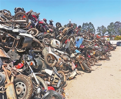 位于赣州市赣县区高新大道的江西尧亿再生能源回收有限公司的拆解车间同样热闹非凡,一名负责人告诉记者,无证车照收不误,每辆摩托车回收价530元,需要销户的车辆另收150元。