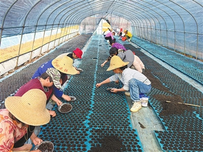 近年来,樟树市中洲乡培育的各类果蔬、中药材等种苗,不仅满足当地农户需求,还畅销周边多地市场。图为3月24日,该乡荷陂村村民在西瓜育苗大棚内播种。