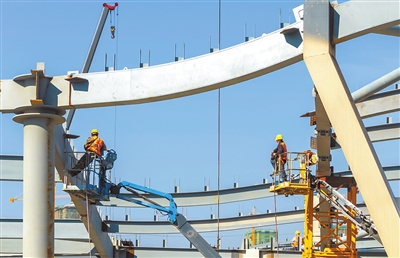 3月21日,瑞昌大唐新区疏浚产业园项目建设现场,工人正在加紧施工。