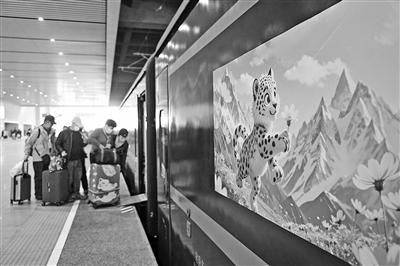 ▲搭乘入藏旅游专列的乘客从西宁站上车。