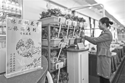 入藏旅游专列乘务人员在餐车内整理有机蔬菜。