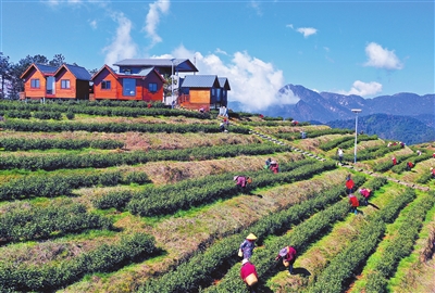 近日,在崇义县上堡乡万长山高山茶场,茶农抢抓晴好天气采摘明前茶。特约通讯员 朱海鹏摄