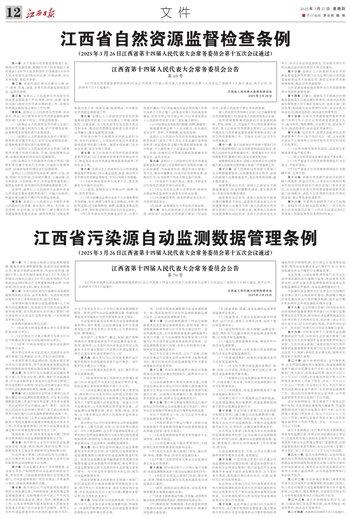 《江西省自然资源监督检查条例》已由江西省第十四届人民代表大会常务委员会第十五次会议于2025年3月26日通过,现予公布,自2025年7月1日起施行。