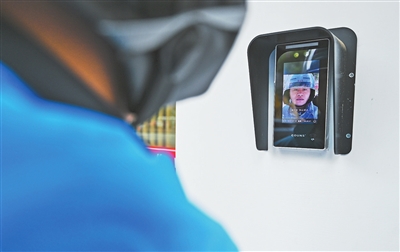 3月4日,一名外卖骑手通过人脸识别进入驿站,方便又快捷。