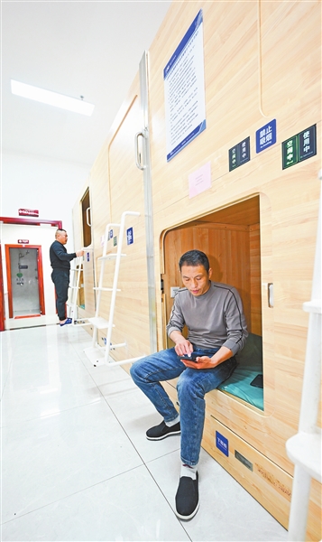 3月17日,河南货车司机徐银峰(右)在“司机之家”免费使用床铺休息。