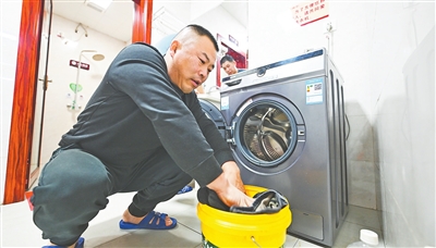 3月17日,江苏货车司机凌金玉在进贤服务区的“司机之家”,使用洗衣机免费清洗衣物。