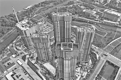 江西金控数字金融创新产业园项目的首台“住宅造楼机”应用楼栋主体结构已封顶,项目整体进入装饰装修阶段。该项目是省重点工程。图为近日,施工人员正在进行外立面施工。本报全媒体记者 王蕴蓉摄