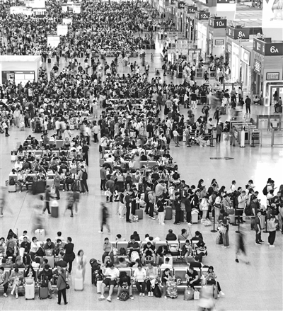 5月5日,旅客在上海虹桥火车站内候车。当日是“五一”假期最后一天,各地迎来返程高峰。