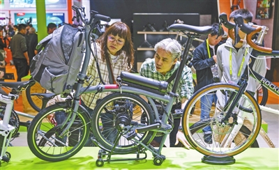 ▶2025中国国际自行车展览会现场。 新华社记者 方 喆摄