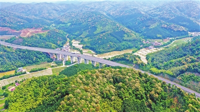 4月30日,全南县龙下乡境内的南龙高速从盛开的野栗子花中穿行而过,与青山、田园、村庄交相辉映,美不胜收。