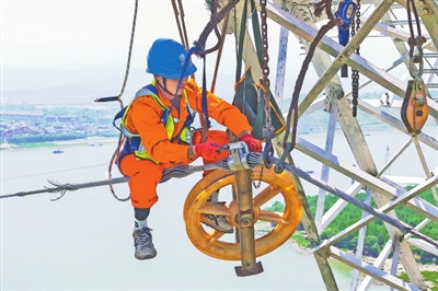 “长江属于黄金水道,来往的船只非常多,所以施工期间,我们需要对航道进行封闭,采用拖船把导引绳从长江的北岸牵引到南岸。”江西送变电中建公司输电施工分公司经理胡华告诉记者,“施工期间放线张力大,铁塔高、江风大,时间紧、施工难度大,这在我们110千伏放线过程中是前所未有的。”