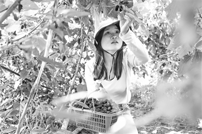 5月11日,在奉新县干垦场大水山社区生态果园,游客体验采摘桑葚的乐趣。通讯员 鲍赣生摄