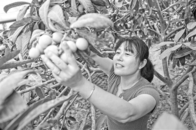 南丰县通过“合作社+基地+农户”模式,引导农户种植枇杷、桑葚等果树,带动乡村旅游。图为5月8日,游客在桑田镇桑田村采摘枇杷。通讯员 谢 东摄